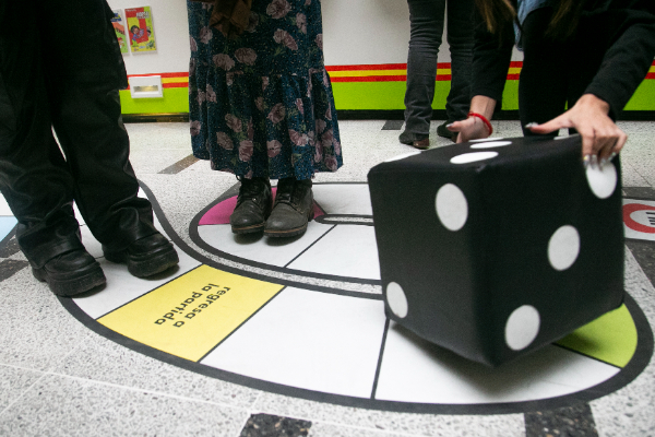 La revista Cabrochico incluía en cada número actividades y juegos para recortar y armar, algo que la muestra de la Universidad Diego Portales quiso destacar. Es posible ver, por lo tanto, armados algunos de los juegos de la revista, así como un como un luche gigante y un juego de casilleros, junto a dados gigantes, en el piso de la Biblioteca Nicanor Parra.
