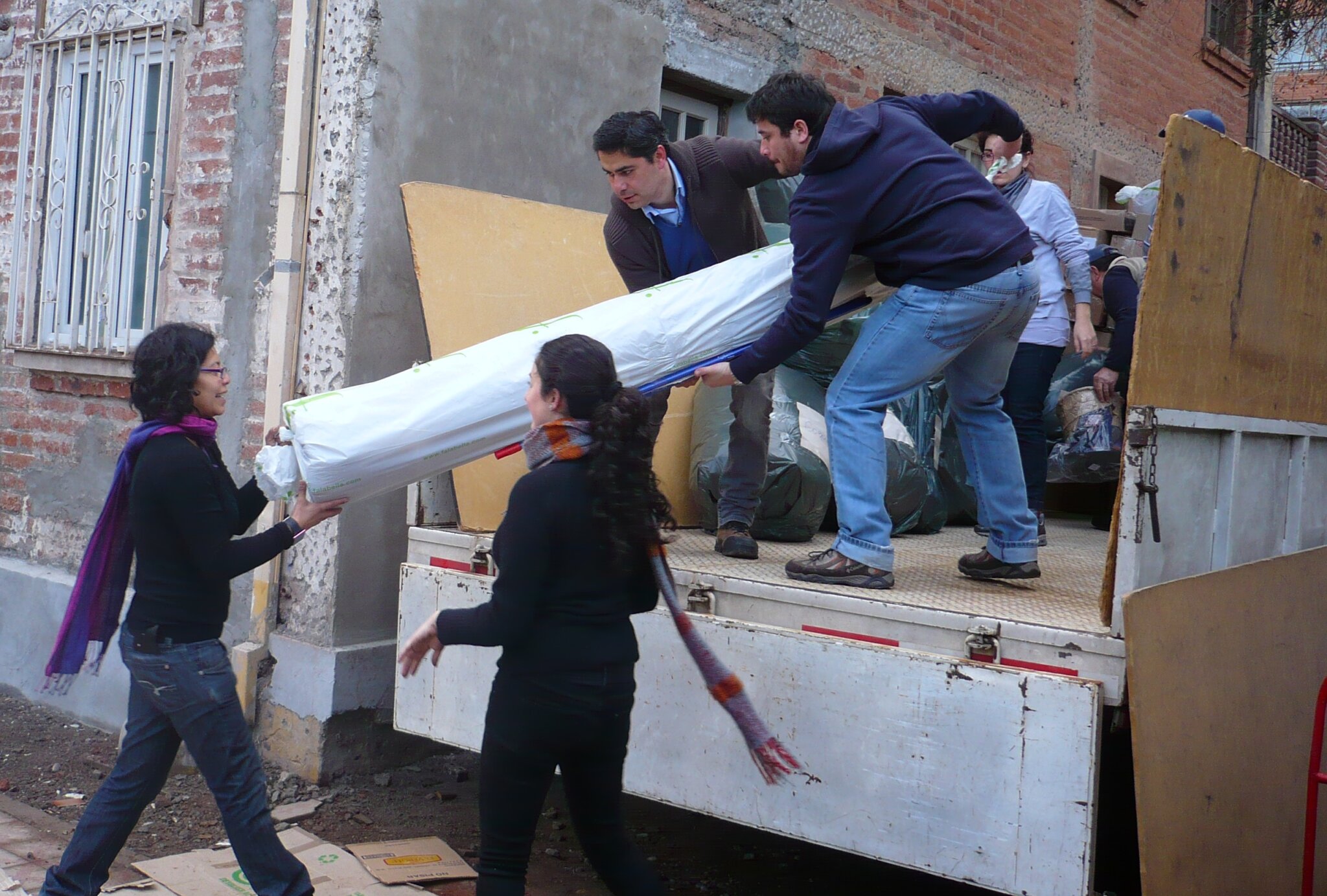 En este momento, hay un camión con estantes, alfombras, mesas y miles de libros, viajando por Chile. Va dirigido a las primeras escuelas en las que se implementarán las bibliotecas Viva Leer Copec. En la foto de arriba pueden ver cómo cargamos este camión desde nuestra nueva casa.