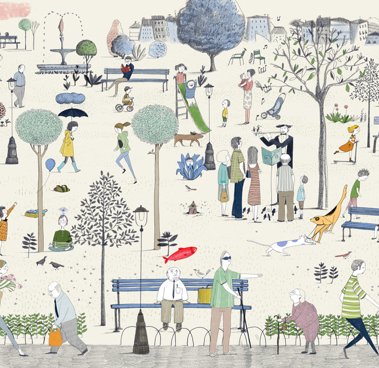 El arenque rojo en la actual literatura oriental —yo lo escuché de Murakami— es una pista falsa para distraer al lectory colarle la verdadera historia por sorpresa. Cuando concebía la historia lo recordé y lo puse. Este es un álbum sin palabras, pero en todas las páginas está el arenque rojo flotando por el parque. De pronto alguien descubre que mientras busca el arenque rojo, algo sucede. Y vuelve atrás y empieza a encontrar las historias que están escondidas dentro del libro. El arenque rojo eres tú mismo como lector, tu mirada, tú asomándote a la ventana. Si es el escritor, es el escritor en pie de igualdad con el lector. Cuando yo veo el libro, el arenque rojo soy yo; pero cuando lo veas tú, el arenque rojo serás tú.