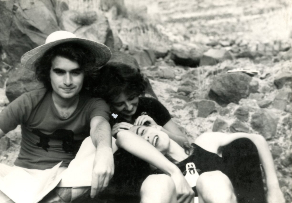 De izquierda a derecha, Manuel Borrás, Silvia Pratdesaba y Manuel Ramírez. Almería, años 70. Créditos: Verlanga.com