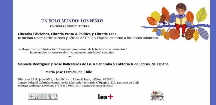 En la librería Lea + del GAM: El evento, organizado por Liberalia, será el miércoles 25 de julio a las 19:00 bajo el nombre «Un solo mundo: Los niños». Inscripciones al teléfono 6727681 o al correo [email protected]. [Descargar la invitación].