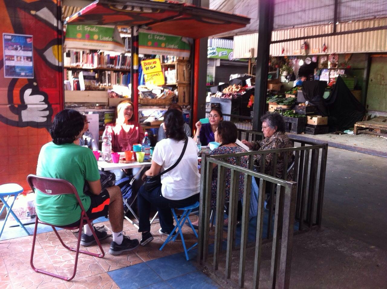 “Lo que buscamos es generar instancias de lecturas y valoración de los libros en lugares que habitualmente están desprovistos o alejados de los centros culturales”, explica Yorka. Se trata de un espacio que, según nos cuenta, se ve enriquecido por el contexto en el que nace: una población diversa y multicultural. “El patrimonio inmaterial de la Vega Central se nutre de la tradición de familias veguinas, y con el ajetreo constante propio de un recinto de tránsito”; y es ahí donde los libros se instalan, al alcance de la mano, como si fueran una naranja o una palta más. “La rutina de locatarios, comerciantes ambulantes y trabajadores de mercados de abastos, es ardua. La extensión de sus jornadas es absorbente. Y en ese contexto, la BiblioVega cumple un importante rol comunitario: dar acceso real a la cultura y la lectura, que llega hasta el mismo puesto de trabajo, reduciendo la brecha, un tanto elitista, que siguen habiendo entre libros y lectores”, finaliza Yorka.